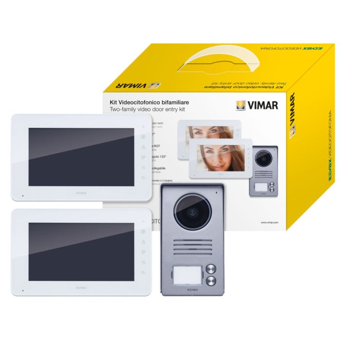 مجموعة إدخال باب الفيديو تحتوي على 2 من سماعات إدخال فيديو LCD 7 بوصات بدون استخدام اليدين مع لوحة مفاتيح سعوية، ولوحة مدخل صوت / فيديو 2 زر مع غطاء مقاوم للمطر ، 2 24 فولت تيار مستمر 1 A مع مقابس قابلة للتبديل (الاتحاد الأوروبي ، BS ، الولايات المتحدة ، الاتحاد الأفريقي) كاملة مع أقواس تثبيت السطح